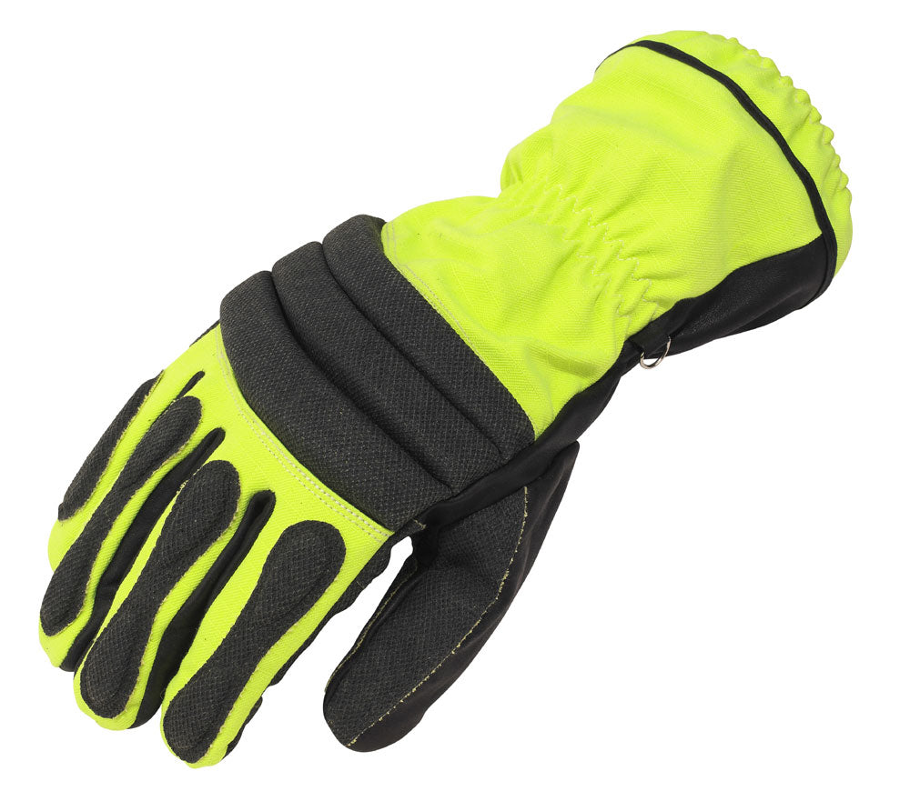 With its carefully designed balance of technical fabric and fireproof leather, the Xtricator wins through; PYROHIDE leather palm, hi-vis Aramid Anti-Static Twin System fabric on the back and FR coated patches, it is the first choice for use during road traffic collisions and other situations when dexterity is paramount. Featuring internal gel pads on the palm of the hand and over the ulnar nerver plus high density foam padding across the knuckles this glove has everything. A velcro strap ensures a tight closure around the wrist and a gaitor cuff prevents debris from entering the garment. Lined through-out with Kovenex®, users can be assured of this glove's protective qualities.
