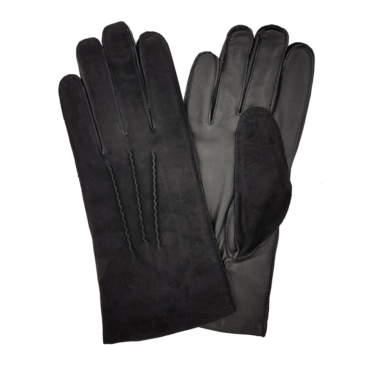 Men's two part soft black suede and leather glove with warm knitted lining.