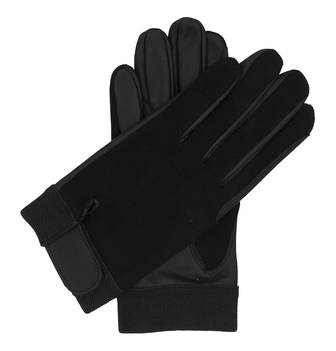 An unlined riding glove made with a plain leather palm and a stretch fabric back with a velcro fastening strap. Fits the hand like a second skin and provides a solid grip in both wet and dry conditions.