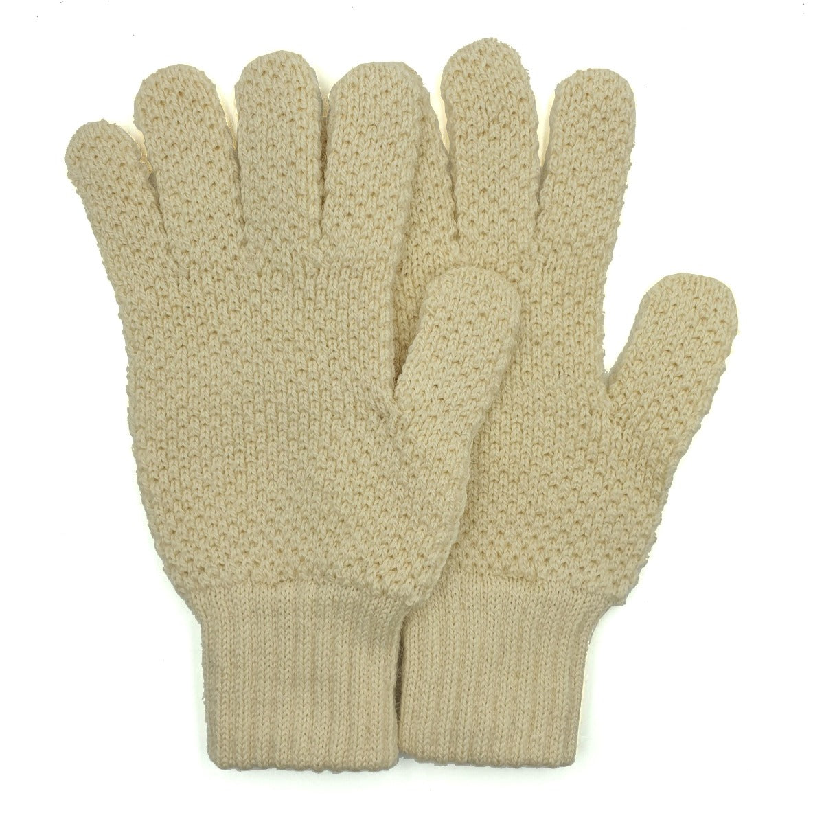 A fully knitted unlined profile glove made from oiled wool with a matching double wool cuff.