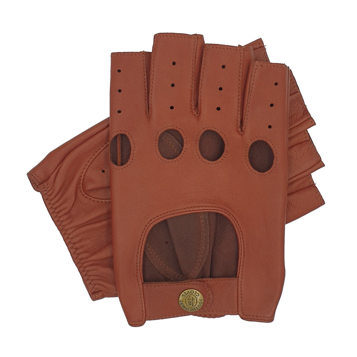 Men's classic unlined leather fingerless driving glove, lightweight and flexible with a keyhole back and knuckle holes