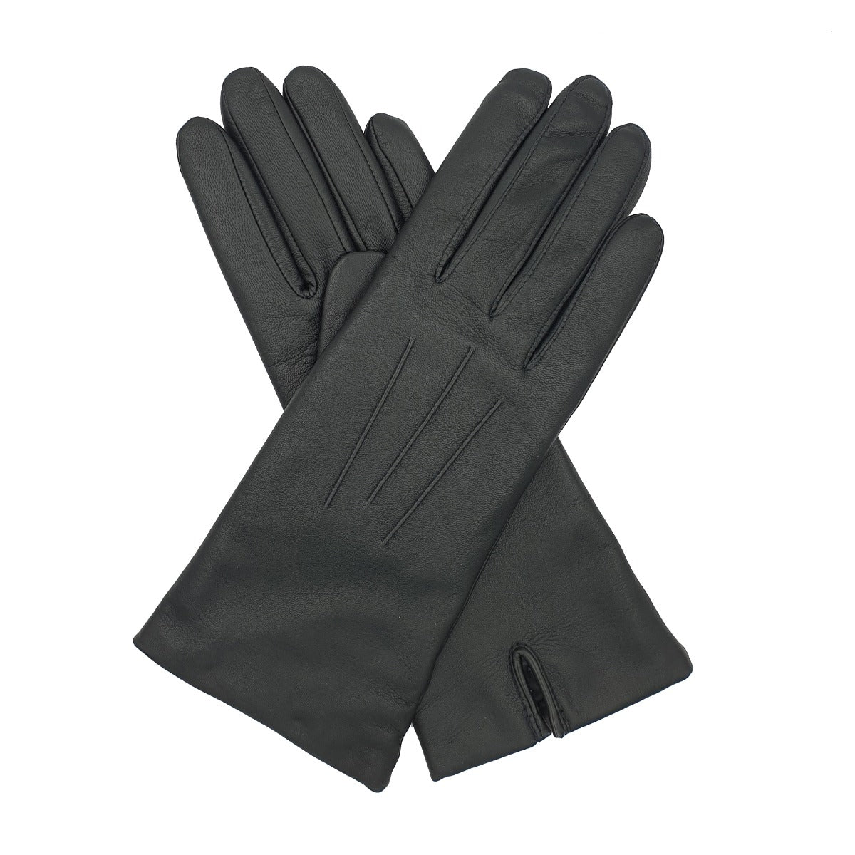 Women's luxurious leather glove with a soft knitted cashmere lining longer length with centre palm vent.